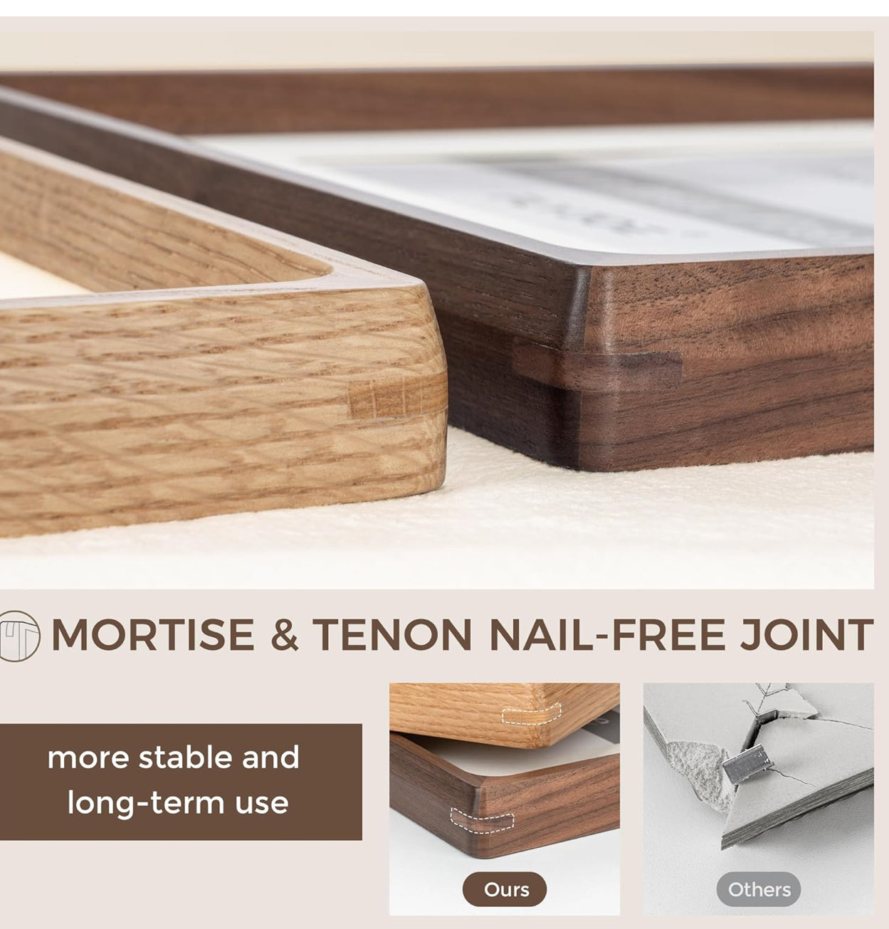 Our frames are handcrafted from real wood and feature tempered glass for lasting protection. With a unique mortise and tensioner joint design, they’re completely nail-free; built to be as strong and enduring as your memories.