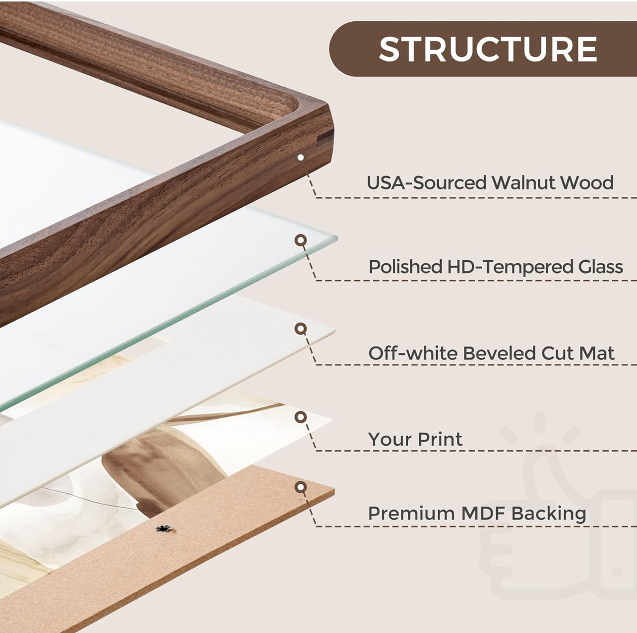 Our frames are handcrafted from real wood and feature tempered glass for lasting protection. With a unique mortise and tensioner joint design, they’re completely nail-free; built to be as strong and enduring as your memories.